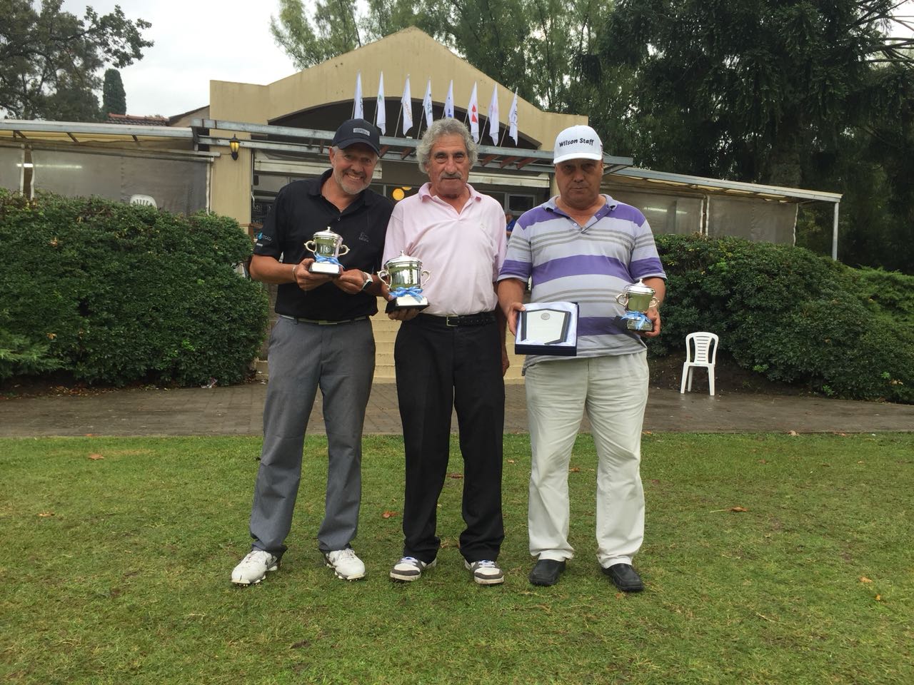 Juan Bautista Laino, hoy 57, y Jorge Goyogana, 64, fueron los jugadores del CC Banco Provincia que contabilizaron para esta jornada dominical. Rubén Alonso, hoy 72, Rómulo Moreno y Horacio Moran completaron la nómina del equipo. En el tercer lugar concluyeron los representantes del Círculo Policía Federal con 124 y 125 golpes para 249, en tanto Posada del Sol CG&R finalizó en el cuarto puesto con 252 golpes, dos menos que GC Río Grande.