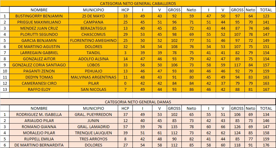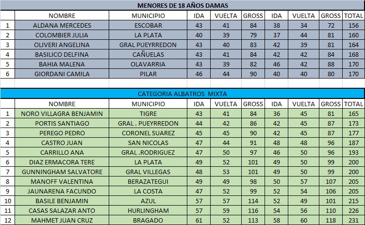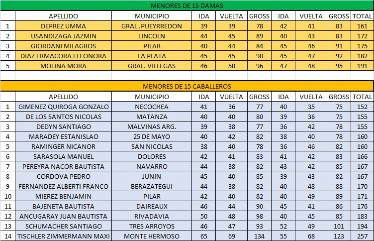También en M15, en Damas, la ganadora fue Umma Deprez, mientras que Mercerdes Aldana se impuso en Menores. En Neto, el ganador fue Benjamín Bustingorry y la ganadora M. Isabella Rodríguez. Benjamín Noro Villagra se impuso en la categoría Albatros Mixta. Todas las posiciones a continuación.