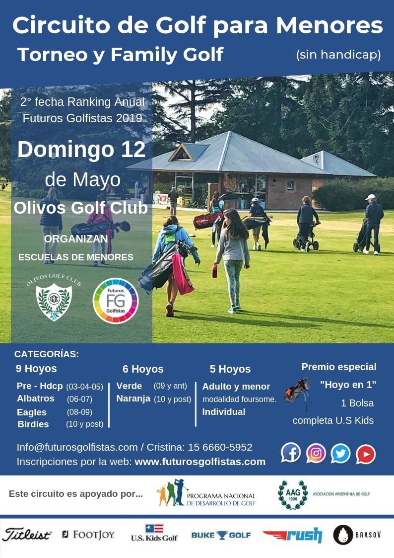 La Escuela de Menores del Olivos Golf Club y Futuros Golfistas los invitan a participar del 2do Torneo y Family Golf del año que se realizará el domingo 12 de mayo en el Olivos Golf Club.